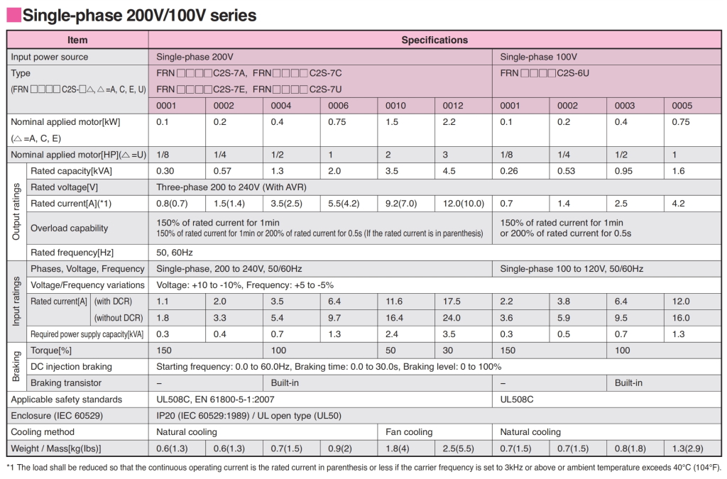 | 4 | FRN0006C2S-7A | 0,75kW | |