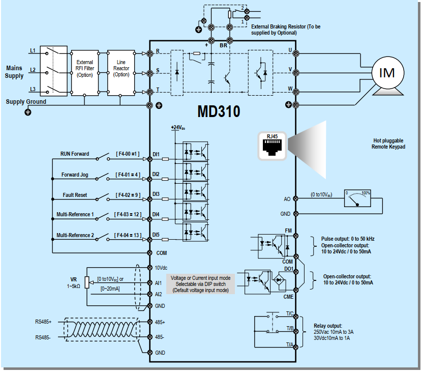 Biến tần Inovance MD310 3P, 380V là dòng biến tần đa chức năng đáp ứng cho hầu hết các ứng dụng vừa và nhỏ. Với moment khởi động lớn và linh hoạt, biến tần MD310 có thể xử lý các tác vụ đòi hỏi tải trọng lớn một cách trơn tru và bền bỉ.