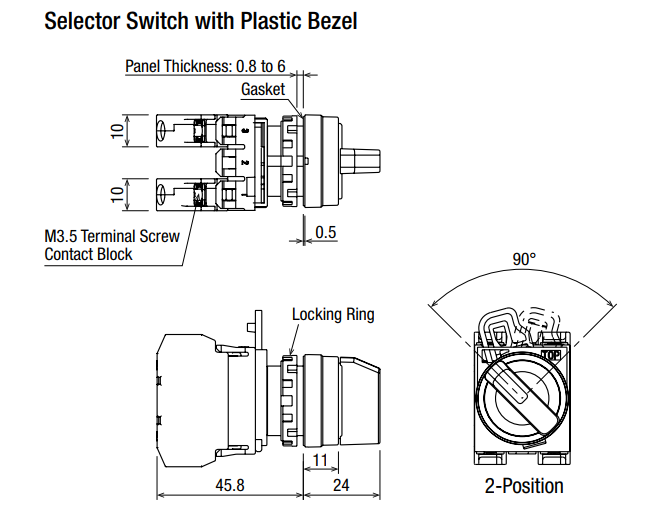 | Loại | Công tắc xoay, 2 vị trí, tự trả về |