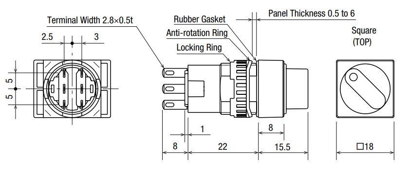 | Loại | công tắc xoay, vuông, 2 vị trí |