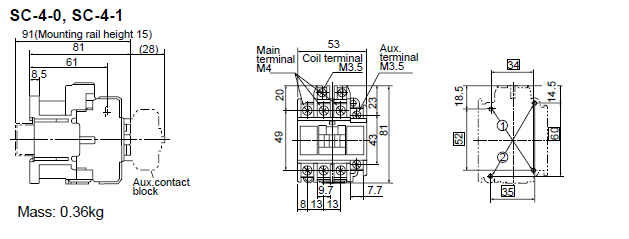 | Tiếp điểm phụ | NO hoặc NC |