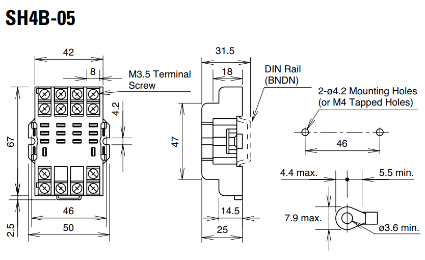 Đế SH4B-05B được sử dụng để gắn lên Din-Rail cho relay Idec loại lớn dòng RH4B