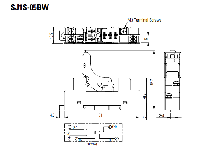 Đế relay SJ1S-05B sử dụng để gắn lên Din-Rail cho relay Idec dòng RJ1S