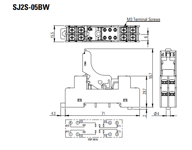 Đế relay SJ2S sử dụng để gắn lên Din-Rail cho relay Idec dóng RJ2S