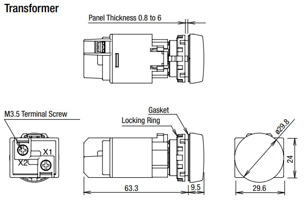 Đèn báo phẳng, có biến thế Idec Ø 22 có thân được thiết kế nhỏ gọn, giúp tiết kiệm không gian bên trong tủ điện. Nhờ có biến thế mà đèn được đảm bảo điện áp cho hoạt động ổn định và liên tục, nâng cao tuổi thọ đèn. Vật liệu trên bề mặt thiết bị được thiết kế để giảm khả năng phản xạ ánh sáng bên ngoài. Đèn báo được sản xuất có độ sáng cao và góc nhìn rất rộng.