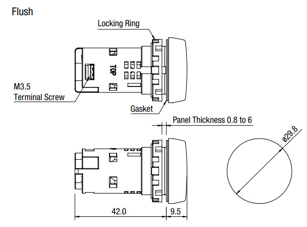 Đèn báo phẳng unibody Idec Ø 22 được thiết kế nhỏ gọn giúp tiết kiệm không gian bên trong tủ điện. Vật liệu trên bề mặt thiết bị được thiết kế để giảm khả năng phản xạ ánh sáng bên ngoài. Đèn báo được sản xuất có độ sáng cao và góc nhìn rất rộng.