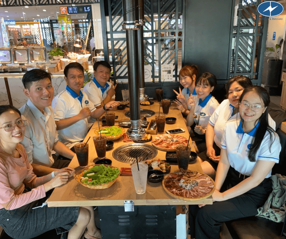 Toàn thể nhân viên cùng tụ họp và có một cuộc trò chuyện tươi vui và ấm áp