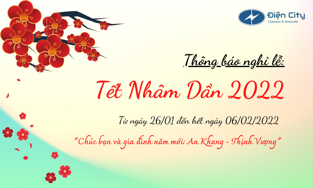 Điện City chính thức nghỉ Tết Nguyên Đán 2022 kể từ 26/01/2022 đến 06/02/2022 Dương lịch (tức 24/12/2021 đến 06/01/2022 Âm lịch)