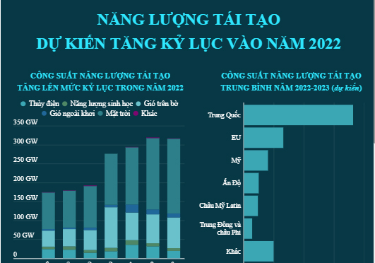 Biểu đồ thể hiện mức tăng của công suất năng lượng tái tạo năm 2022