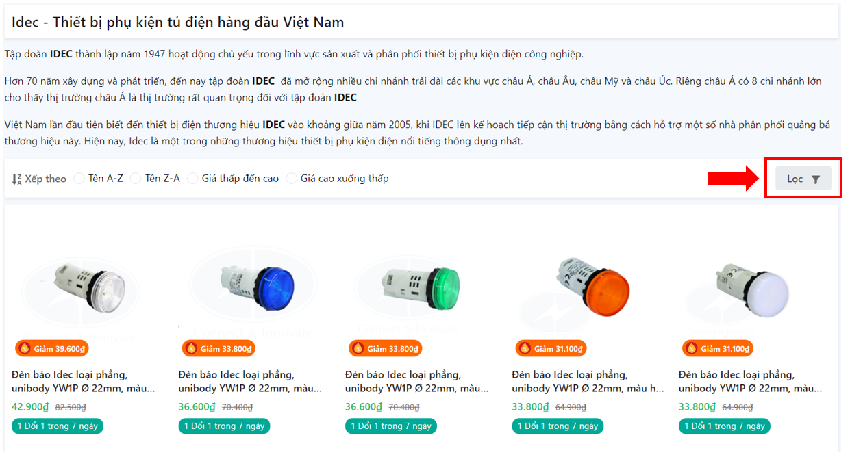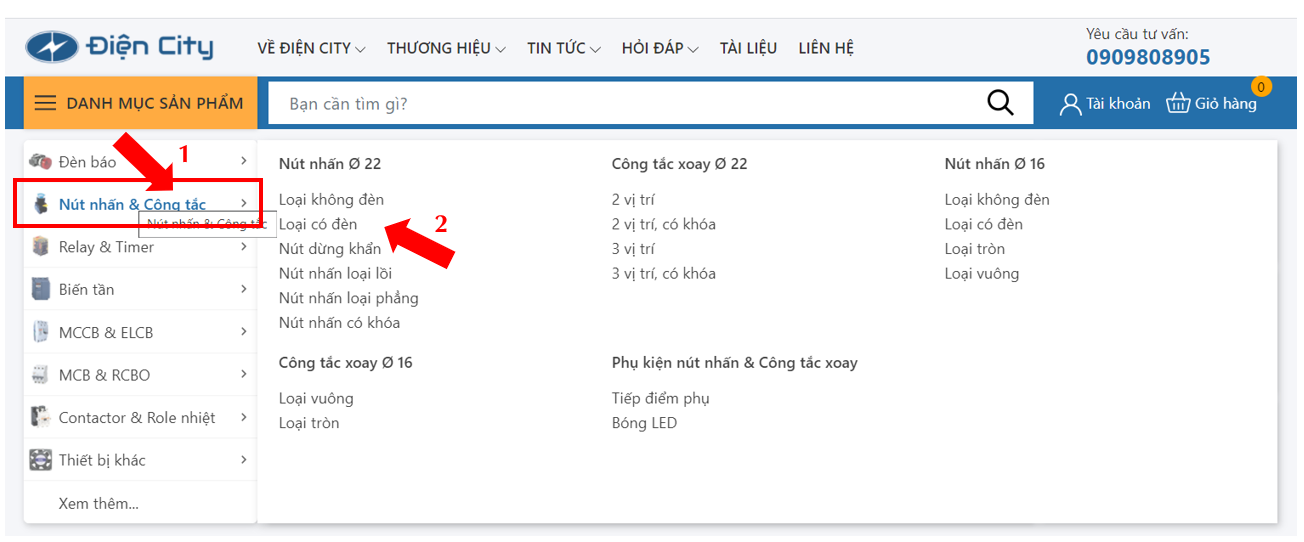 Quý khách hàng có thể lựa chọn theo từng danh mục : đèn báo, nút nhấn và công tắc, relay và timer, biến tần,...