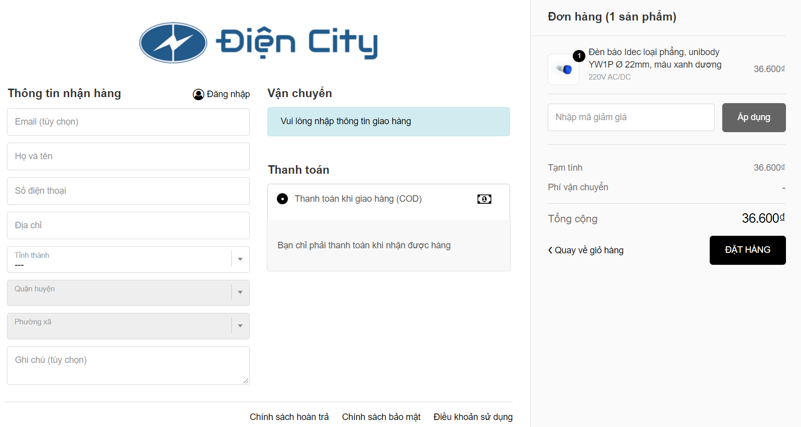 Chào mừng quý khách đã đến với Thế Giới Thiết Bị Điện Công Nghiệp tại website diencity.com. Quý khách không cần trực tiếp đến cửa hàng mà vẫn có thể mua hàng ngay tại nhà bằng những cách sau đây :
