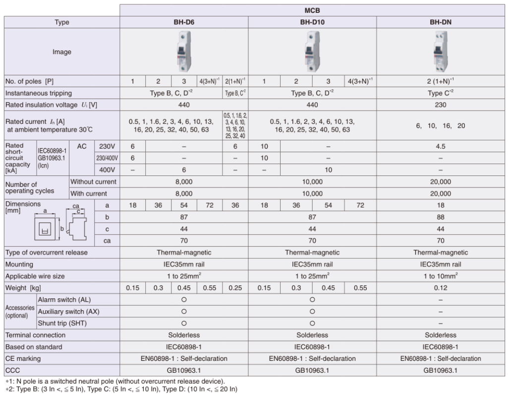 1 | MCB (Aptomat) Mitsubishi BH-D6 4P 6kA | BH-D6 4P 6A C N | 6A |