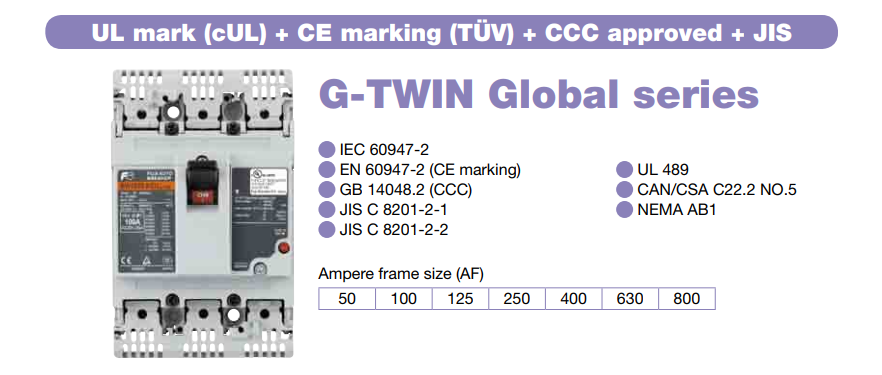 MCCB (Aptomat) G-Twin Series được xem là dòng MCCB hoàn thiện của hãng Fuji Electric, được thế giới biết đến từ năm 2006. Với tính tương thích toàn cầu cao và được áp dụng công nghệ tiên tiến vào sản xuất, cho đến nay MCCB Fuji dòng G-Twin vẫn luôn khẳng định được vị thế vũng chắc của mình trên toàn thế giới.