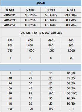 3.Thông số kỹ thuật MCCB LS ABN250AF