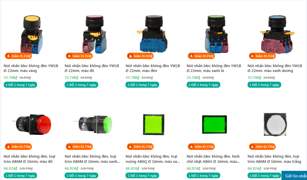 Điện City có hệ thống đa dạng các loại nút nhấn idec, nút nhấn idec không đèn với nhiều màu sắc, kích cỡ, kiểu dáng khác nhau:
