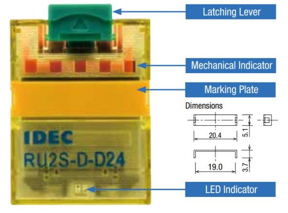 - Dễ dàng phân biệt cuộn coil bằng cách phân biệt màu sắc trên mặt trước Relay.